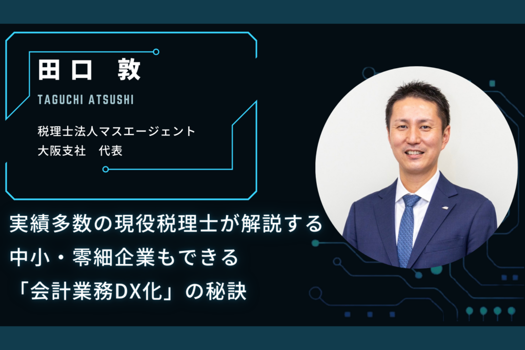 経営を合理化する上で避けて通れない、「会計業務のDX化」。クラウドソフトの導入やペーパーレス化などを実現したいと考えつつも、どこから手を付けて良いかわからず悩んでいる経営者も少なくないでしょう。そこで今回お話を伺ったのは、税理士法人マスエージェントの田口さん。業種を問わず、数多くのスタートアップ企業・中小企業をサポートし、会計のDX化を成功させた実績の持ち主です。会計業務を安くDX化する上で知っておくべきことや、ツール選定のコツなどについて解説いただきました。