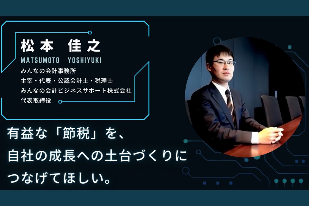 みんなの会計事務所は、保険、創業融資・資金調達、相続、税務調査、社会保険、不動産、経理など各分野のスペシャリストが在籍し、税金に留まらない経営に関する様々なお悩みをワンストップでサポートできる総合事務所です。今回、代表の松本佳之氏に「節税」をテーマにお話を伺いました。